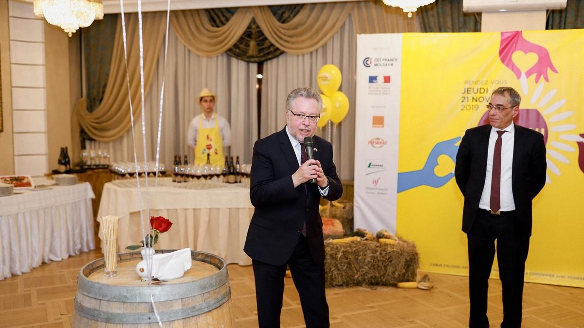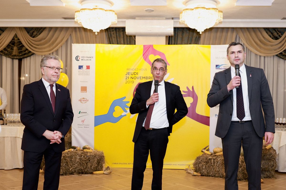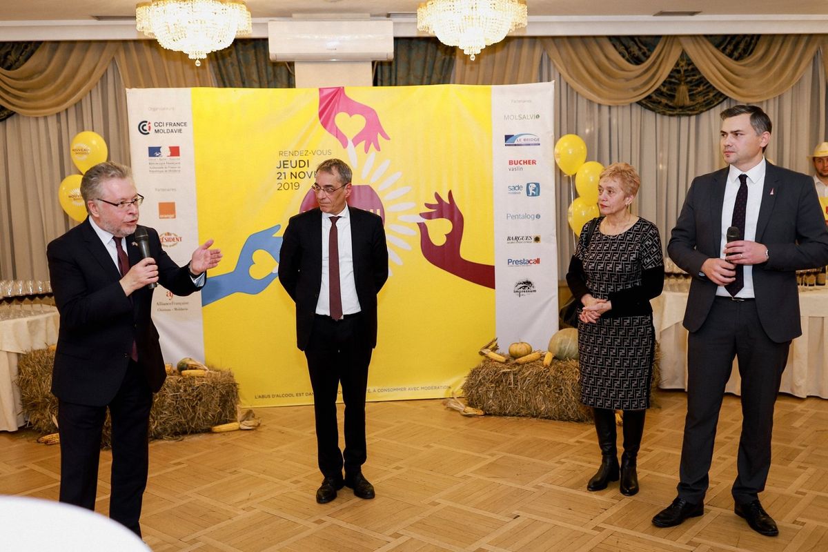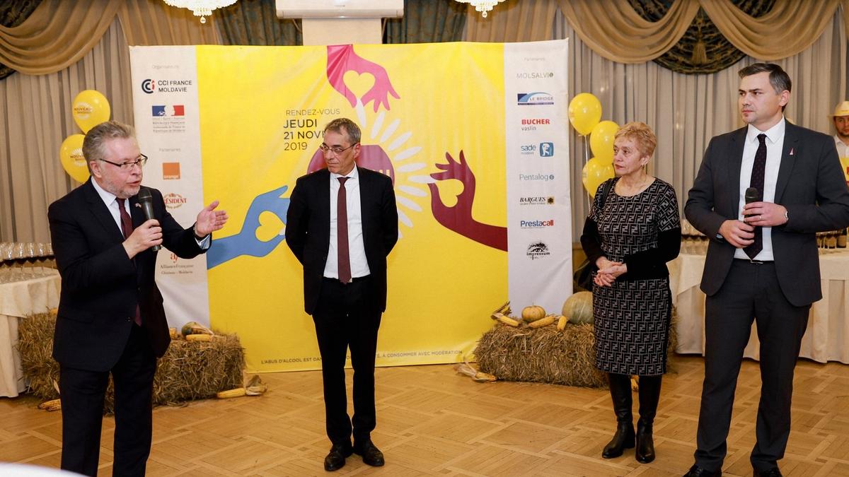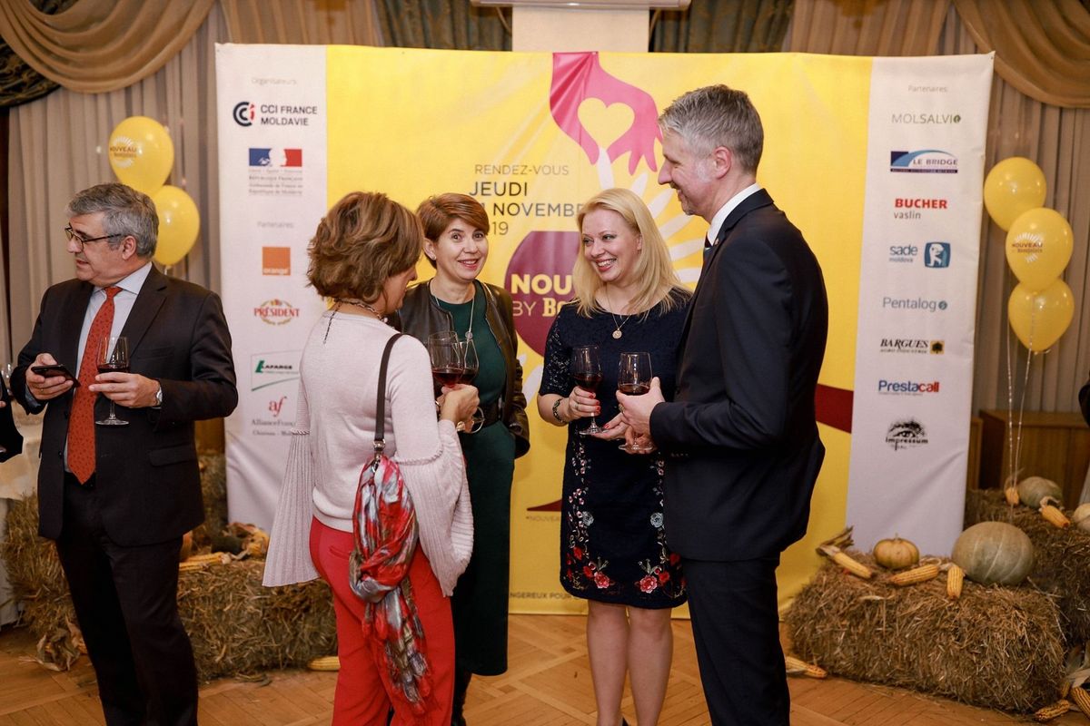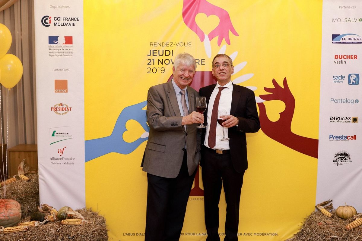 À l'occasion de l'arrivée du Beaujolais Nouveau 2019 en Moldavie, la Chambre de Commerce et d'Industrie France Moldavie, l'Ambassade de France en Moldavie et leurs partenaires, avaient tenu, cette année encore, à convier de nombreux invités à célébrer l'amitié franco-moldave.
